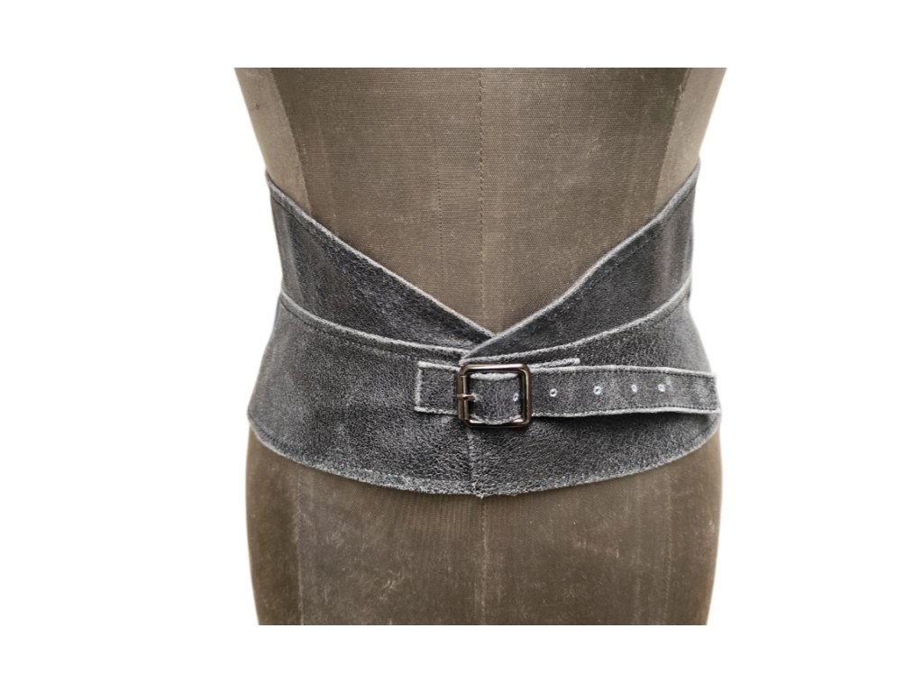 Pásek je z pravé kůže. Vypodšívkovaný je bavlněným plátnem. Nošením získává patinu.
